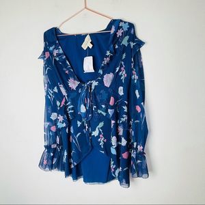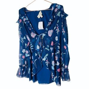 NWT Revolve Cleobella Blue Chiffon Ruffle Top Small