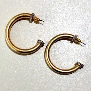 Brand new, gorgeous thick hoop style eqrrings with crystal accent ring edges. About 1.5” long.