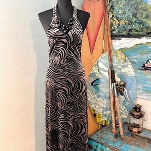 NWT,Robbie Bee,Incredibly Sexy Animal Print Gown, Secured Halter-Design, EUC, 14