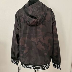 Needing an extra layer of warmth? This Rocawear Hooded Jacket is lightweight with an added fleece lining to help you keep warm. Perfect for everyday wear. Hooded with sparkle logo waistband and cuffs. Zipper closure. *Brand new with tags. Authentic brand.