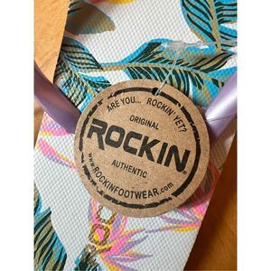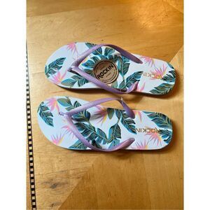 NWT! Rockin Tropical Leaf Print Flip Flops Size 8