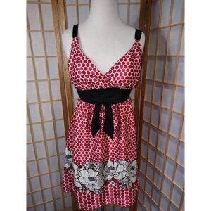 Beautiful polka dot/floral dress from Ruby Rox. New with tags. Size small. Padded bra. Tie waist with bow accent. 100% polyester. Machine washable. Made in China. Excellent condition. Nonsmoking home.