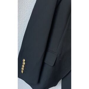 Crest-embossed buttons bring classic preppy style to a nicely weighted, double-breasted blazer with peaked lapels and a commanding look.Peaked lapelsNonfunctional five-button cuffsLined68% polyester, 29% viscose, 3% elastaneDry cleanImportedMeasurements:Chest-20" acrossWaist-18.5" acrossSleeve(shoulder to cuff)-25"Hips-21.5" acrossLength-30.5"