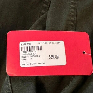 NWT’S. Articles of Society Taylor Dark Fern Green Denim Jean Jacket,
