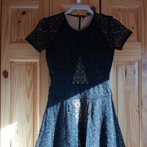 NWTS BCBGMaxazria Ailleen Dress Black Lace Short Sleeve Size XS