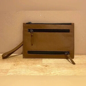 NWTS BOTKIER Coffee Brown Leather Chelsea Clutch With Removable Wristlet Strap.