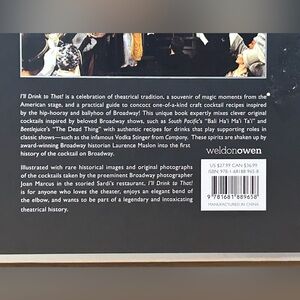 “I’ll Drink To That”. A cocktail recipe book written by Laurence Maslon. Features broadways legendary stars, Classic Shows, and the Cocktails They Inspire. This book is a celebration of broadways finest and the cocktails they loved most. Illustrated with rare historical images and original photographs of the cocktails. Brand new with tags.
