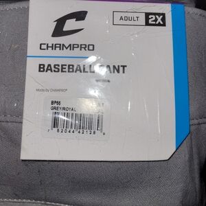 NWT'S CHAMPRO BASEBALL PANTS 2X Gray W/ Royal Stripe