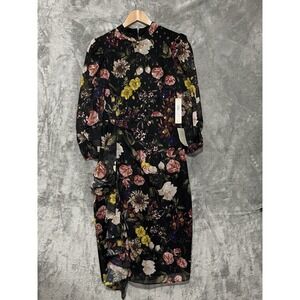 NWT'S ELIZA J Floral Metallic Long Sleeve Body Con Chiffon Dress Size 6