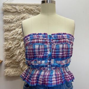 🅢🅐🅛🅔 NWTS ! Free People Henrietta Plaid Tube Crop Top Blue