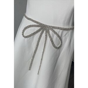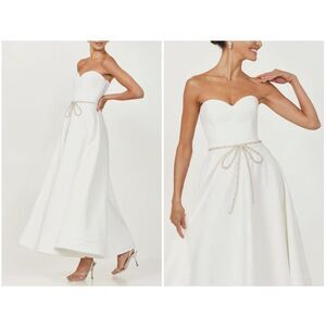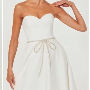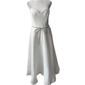 NWT'S HELSI Grace Sweetheart Strapless Crystal Bow White Midi Dress sz Medium