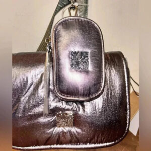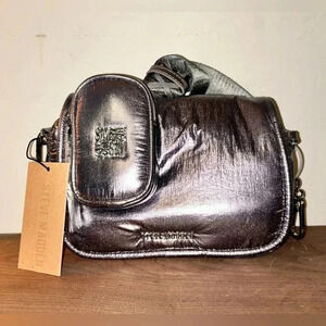 NWTS STEVE MADDEN BHOLLI METALLIC GUNMETAL PUFFER CROSSBODY WITH ACCESSORY POUCH