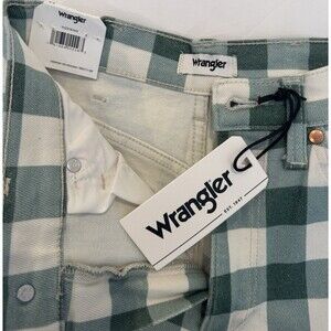 NWTS Wrangler WROCK 672 Green White Gingham Plaid Flare Jeans Size 24 VTG look