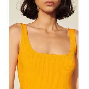 NWT SANDRO 3 US 8 Alya Ribbed Sleeveless Cropped Sweater Tank Top Jaune Bright