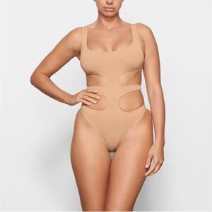 NWT SKIMS Ochre Tan Swim Tank Cut Out Monokini Size Small