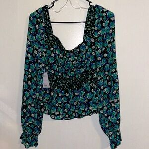 🌹NWT/SO FLORAL GREEN/BLACK CROP TOP