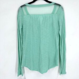 NWT SO Turquoise Blue Lace Long Sleeve Henley Top Size XS Sheer Mesh