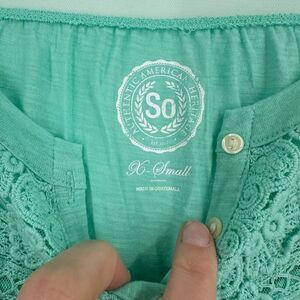 NWT SO Turquoise Blue Lace Long Sleeve Henley Top Size XS