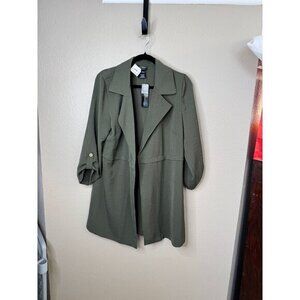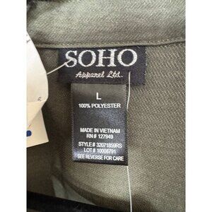 NWT-SOHO Women's Green Jacket Size L long sleeve long jacket collared Polyester