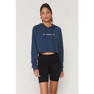 NWT SPIRITUAL GANGSTER Sz L KINDNESS LUNA CROPPED HOODIE IN NAVY