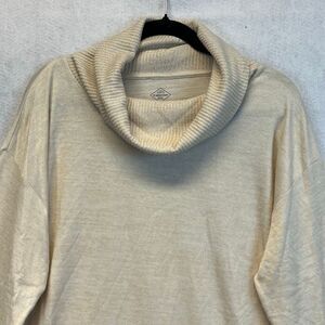 NWT ST. JOHN’S BAY Women’s Tunic Top XL Beige Long Sleeve Cowl Neck Curved Hem