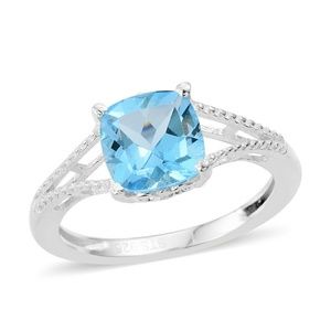 NWT-GENUINE BLUE TOPAZ SPLIT RING SET IN PURE 925- STERLING SILVER NICKEL FREE. TCW-1.65