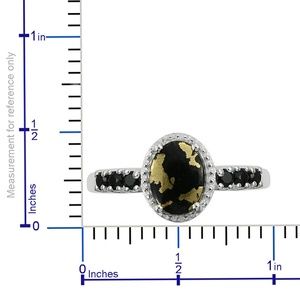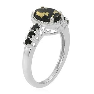 NWT-GENUINE GOLDENITE & THAI BLACK SPINEL RING SET IN PURE 925- STERLING SILVER NICKEL FREE. TCW-1.31
