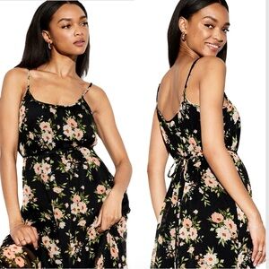 NWTSđź’“THE OCCASION LARGE đź’“OLD NAVY ELITE LINE SLEEVELESS BLACK CHIFFON WAIST DEFINED GRREK GODDESS SUNDRESS MAXI DRESS W PINK PEACH FLORAL PATTERN