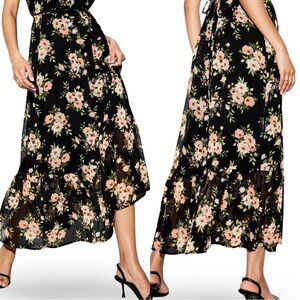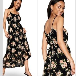 NWTSđź’“THE OCCASION LGđź’“PREMIUM LINE BLACK FLORAL CHIFFON WAIST DEFINED MAXI DRESS