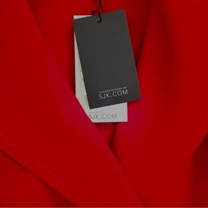 Beautiful New St.JOHN Red Coat, Snap button Front with Pockets, Sash Ties at waist , Collar . Size Small.