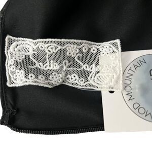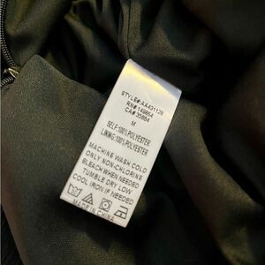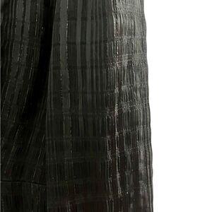 Scoop neck, long sleeve Black dress with shimmer in fabric. Lined, zip back, ruffle at bottom. Size: M, 100% polyester, pit to pit: 17”, length: 32”