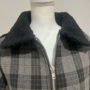 NWT Sage the Label Anthropologie Sherpa full zip plaid jacket size small