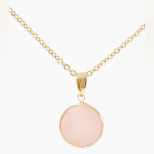 "A rosy spin on our classic gold-plated 19" adjustable Marble Serenity necklace. The Rose Quartz stone is known for dissolving emotional wounds, fears, and resentments, and evokes gentle feelings of love and safety."