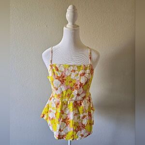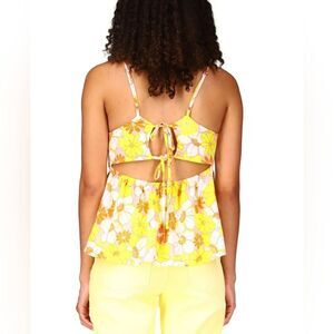 NWT Sanctuary Floral Print Linen Blend Yellow Floral Top Medium