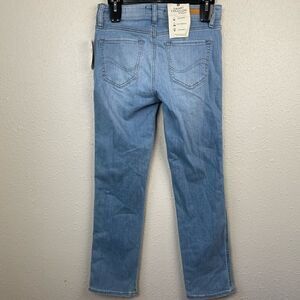 Super comfortable pair of stretch fit crop fit jeans measuring 13.5 inches at the waist laying flat and with a 26 inch inseam.