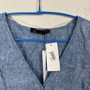 super cute light blue blouse! measures 19 inches armpit to armpit and 21 inches shoulder to hem