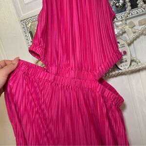 NWT Scoop Women's Plisse Halter Maxi Dress with Waist Cutouts Pink