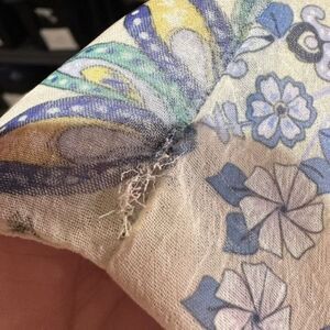 This top has stretching/ tearing in one small area at 3 seams toward the bottom —shown in photos.