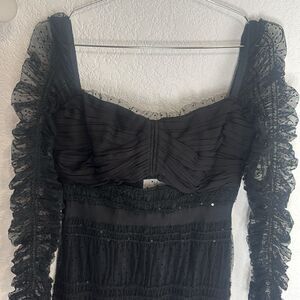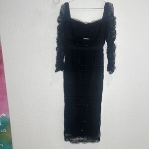 NWT Self Portrait BLACK DOT MESH SHIRRED MIDI DRESS BLACK US Size 6