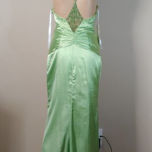 Beautiful and Sexy Prom Dress, Formal Gown in light green (lime) color by Extreme Prom in Mermaid Style. It is embellished with sequins and beads. Measurements- Bust 34, Waist 26, Hip 35.