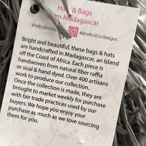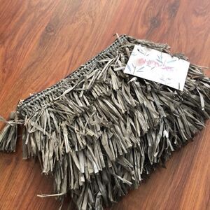 NWT She Bobo Madagascar raffia clutch. Very unique bag handmade in Madagascar Size is approximately 10 x 8”. Color is a light gray.