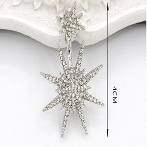 Absolutely stunning star earrings in silver and rhinestones that can be worn with just stud or attached to the star that hangs behind the ear. Second picture is to show how they are worn but I do have them in gold as well. Shine like a star.