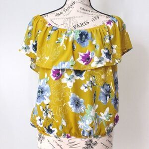 NWT Sienna Sky Yellow Floral Off Shoulder Top Size L.