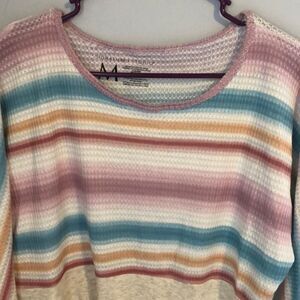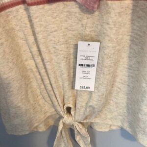 This is NWT top on pastel colors and a cute tie in the front. No issues to note and comes from a smoke free home!