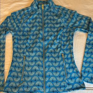 NWT Sigrid Olsen Woman’s Golf Tennis Full Zip Jacket in Blue Palm Fan Pattern.