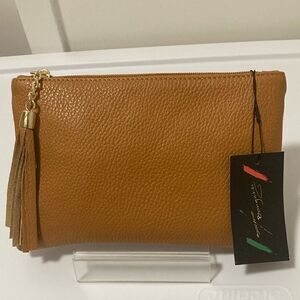 NWT Silvano Borgatti Italian pebbled leather bag with tassel & detachable gold tone chain. Use as a clutch, shoulder or crossbody bag.