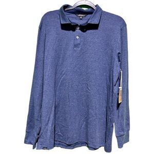 NWT Simply Southern Men's Mountain Long Sleeve Polo Heather Navy Blue Size XL