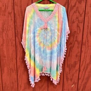 NWT Simply Southern Women's Tie Dye Swirl Beaded Tassel Cover Up
