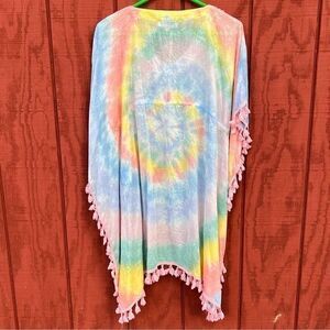 NWT Simply Southern Women's Tie Dye Swirl Beaded Tassel Cover Up Multi Size S/M