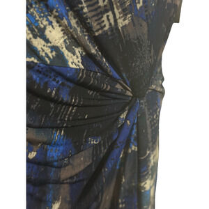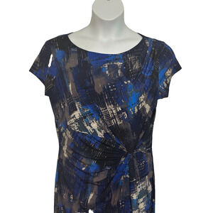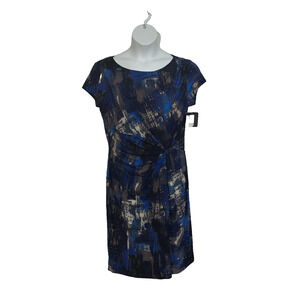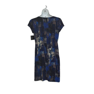 NWT-Size 14 blue, brown, taupe, black multi colored short sleeve knee length lined dress